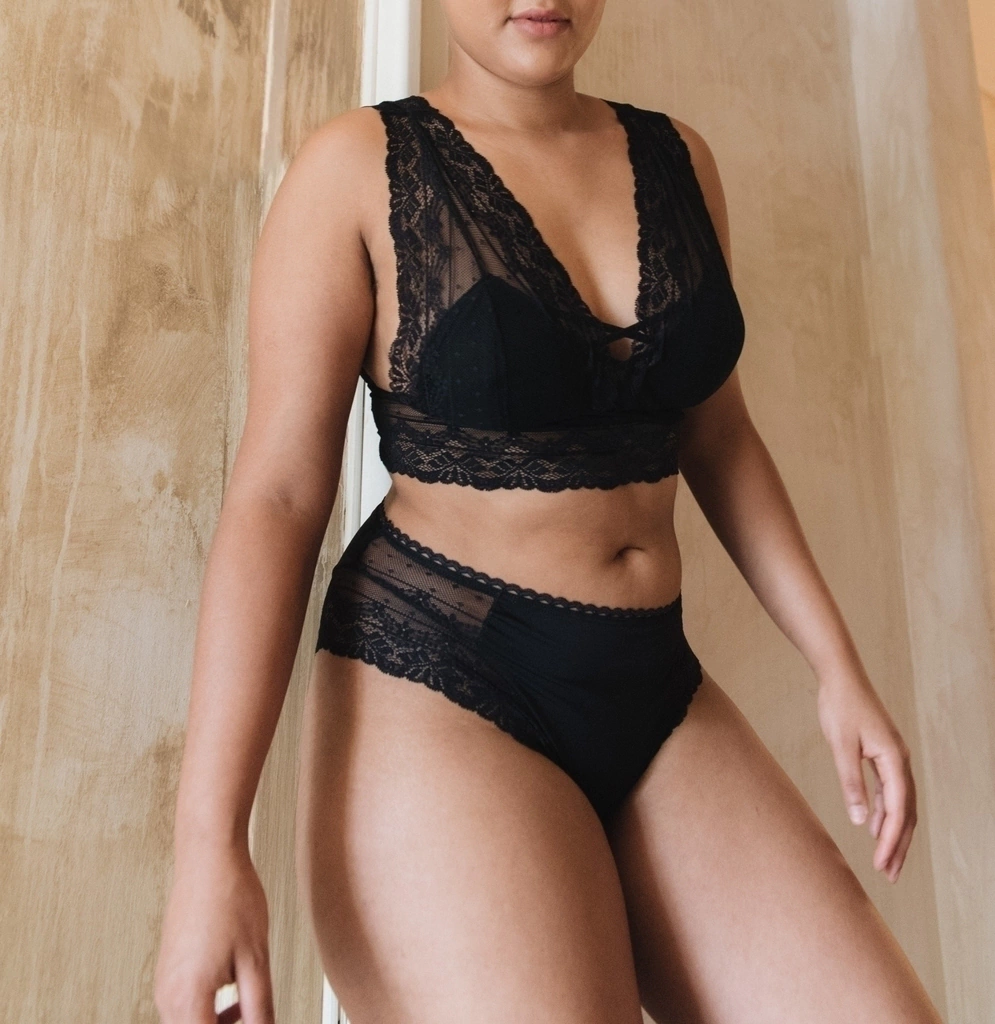 Culote tiro semi alto, de tela lycra blanca con recortes de puntilla a tono.