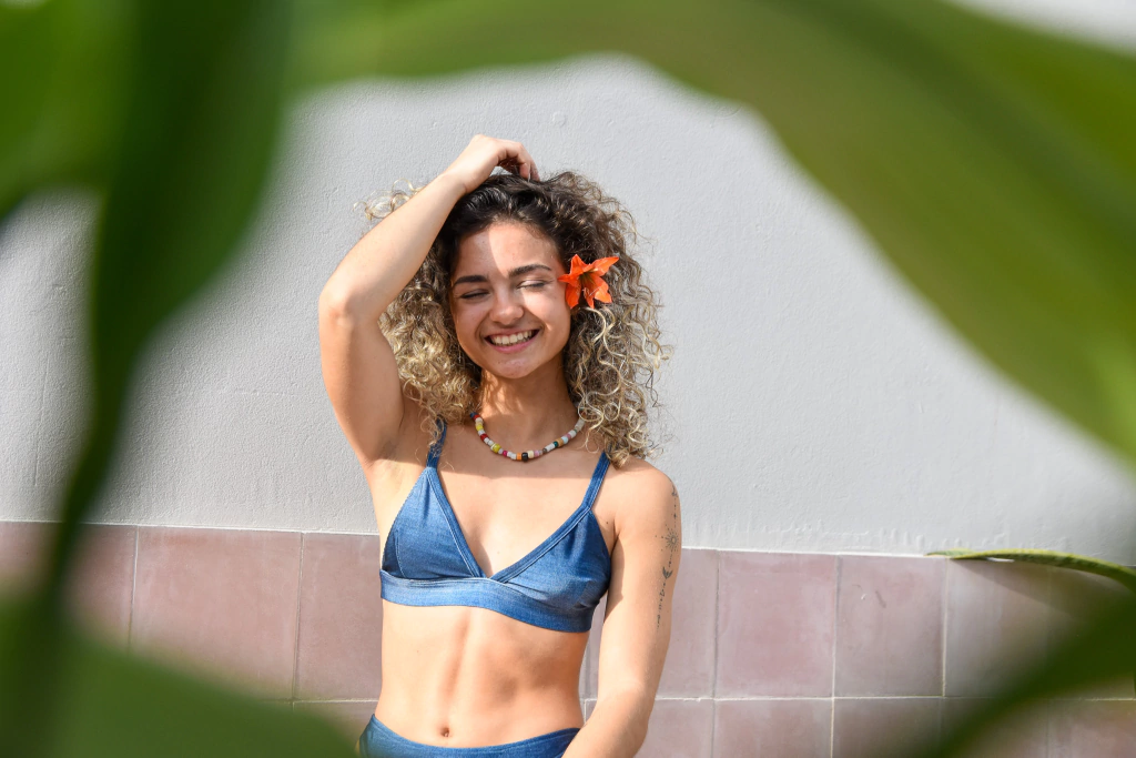 Espalda, con tiras de doble lycra para anudar a tu gusto.